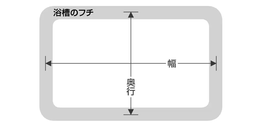 ふたが浴槽のフチの半分以上に掛かり、浴槽の外寸より小さいサイズを選んでください。浴槽の外寸より本体サイズが大きいと、浴槽からはみ出したり壁に当ってふたが閉まらなくなるため使えません。