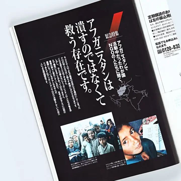医師である故・中村哲さんのもと、パキスタンとアフガニスタンで人道支援を行っているペシャワール会へのカンパを読者に呼びかけました。カンパは救援物資のほか、無償診療所の増設や水源確保にも使われました。