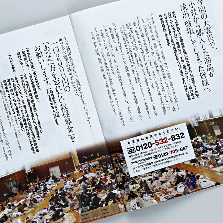 東日本大震災ので被害にあわれた方々への救援募金を呼びかけ、読者の皆さんのカンパを集めました。50台の空間放射線量測定器と8台の食品放射線量測定器を購入し、福島をはじめ、全国の「放射能にさらされている子どもとお母さんを守る活動」に役立てました。