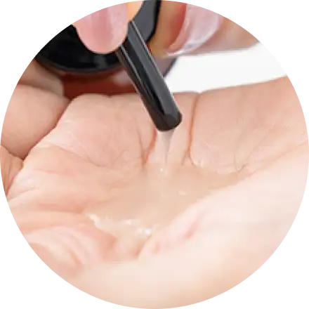 私はネイルオイルを持ち歩いて、タクシーの移動中などのすき間時間にケアしています。手を軽く握ってちょんちょんと爪の根元につけたら、反対の親指で一気に小指から親指に向かってなじませるだけ。一本一本ケアしなくていいから、これなら簡単ですよ。