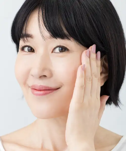 つけ終わったら、頬骨の一番高いところを触る「満タンチェック」で潤いを確かめましょう。頬骨の周りは肌が薄くて乾きやすいところですから、ここが潤っていれば合格です。もし潤いが足りなかったら、量を足して十分に保湿しましょう。