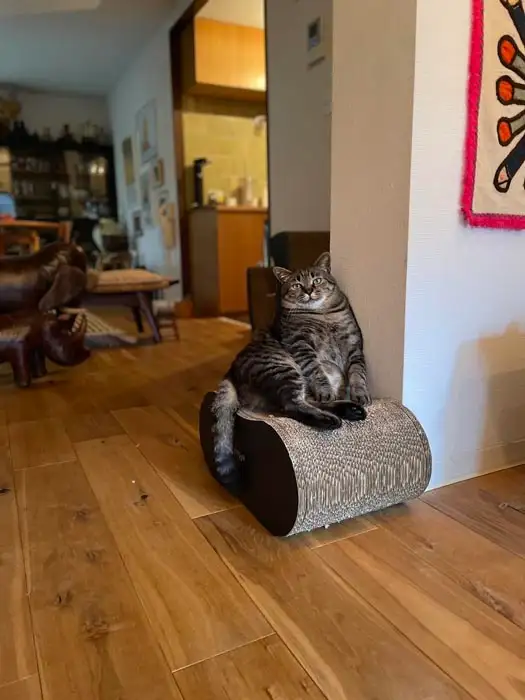 おっしゃる通り、これ、箸置きですね(笑)。ちゃんと前足が香箱(*)になって、ヒトが猫型の箸置き作ろうと考えたらこういうふうになるだろうなという形。真っすぐな背中も箸が転がり落ちにくい造形です。