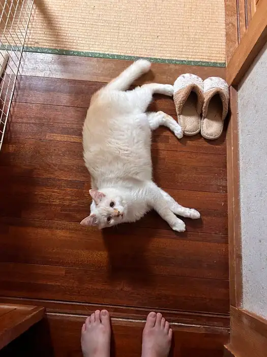 さっさとお帰りください 尻尾で主張しすぎるネコ
