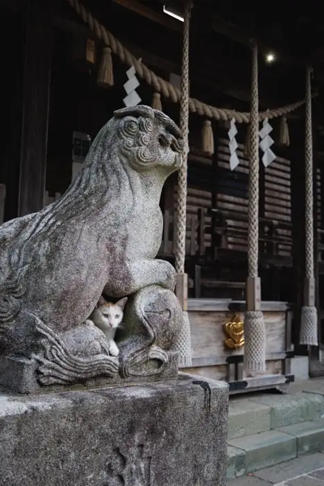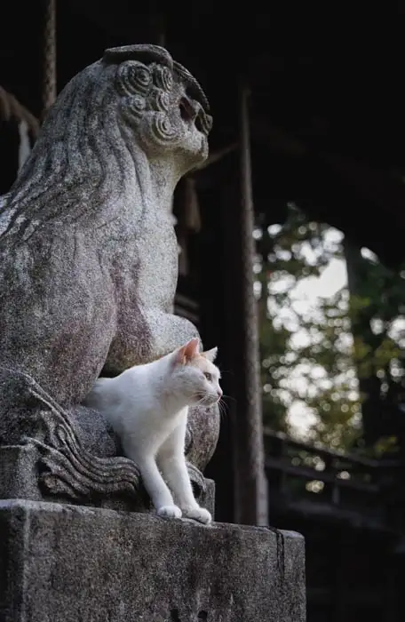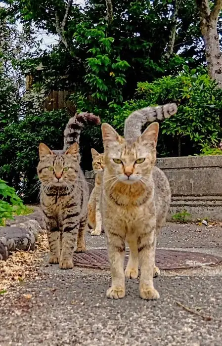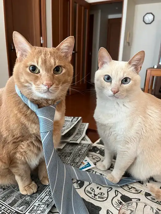 タイトルを見て、写真を見ると、たしかにもう「お帰りくださいませ」としか見えません。睨みをきかせて尻尾は右へ直角にピンッ。間から顔を見せる奥のコの眼差しの強いこと。店のオーナー(奥のコ)まで怒らせたらもう、この店は出禁(できん)です。