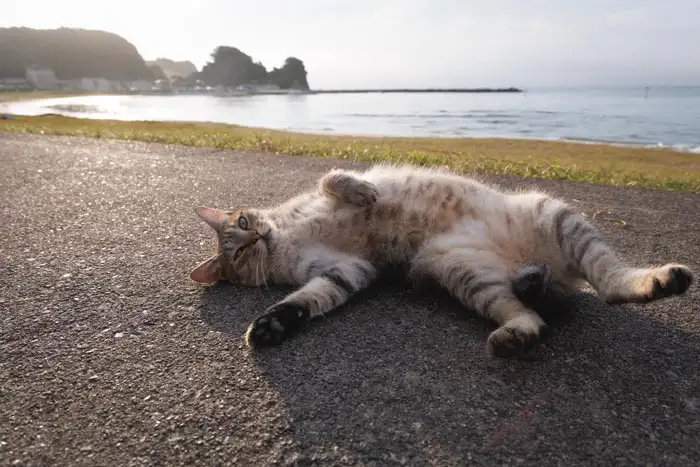 *ネコがリラックスしているときにとる前足を胸の下に畳み込んだポーズ。「香箱座り」とも。