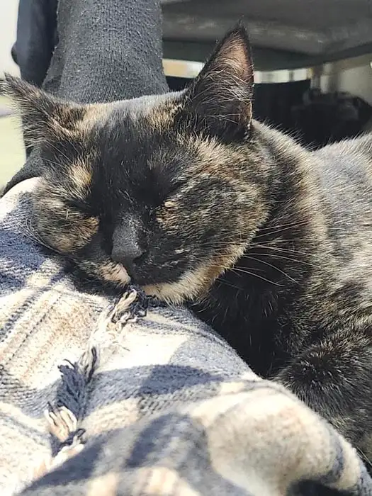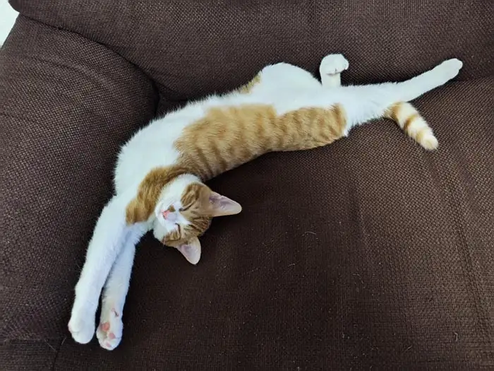 くつろぎ過ぎていてかわいいなと思わず選んでしまいました。後ろ足がV字でピーン。入浴しているようにも見えます。ほんとにごきげんちゃんなところを撮影していたら、カメラ目線までくれたのでしょう。いい一枚です。