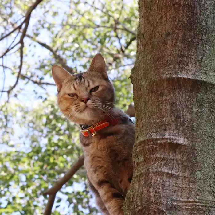 どうしてこんな目つき? いい首輪を付けてもらって、間違いなく可愛いがられているでしょうに。「散歩中に木の上に登ったのでカメラを向けると、とんでもない目つきで見下されました」とコメントあり。育て方を間違えたのか、飼い主さんも混乱しています(笑)。