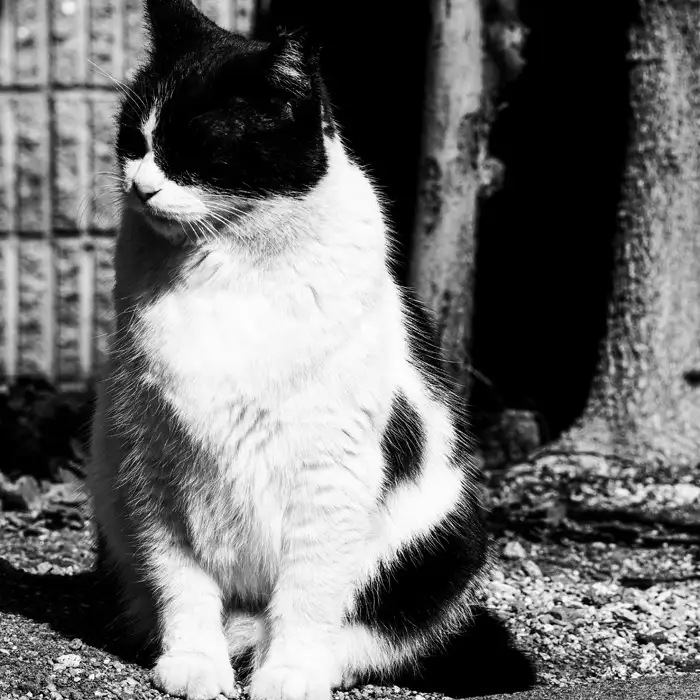 ちょうど目だけ動いてなくて、それ以外の体部分が回転していて、不思議な生き物のように見える一枚です。どうやったらこう片目だけ動かないのか、ネコって不思議な動きをするんだなぁと思います。