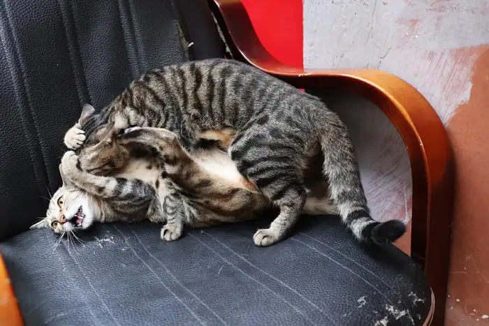 勢い余って相手にめり込んでしまう、一生懸命さが愛らしいネコの一面を捉えていると思います。その瞬間を写真に収めた撮り手のセンスを感じます。