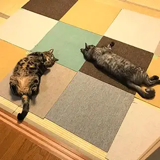 これから何かがはじまりそうな一瞬のシーンを、横から写真に納めているのがいいなと思いました。一番奥のネコが真ん中のキジトラをしっぽでじゃましているのもかわいいです。