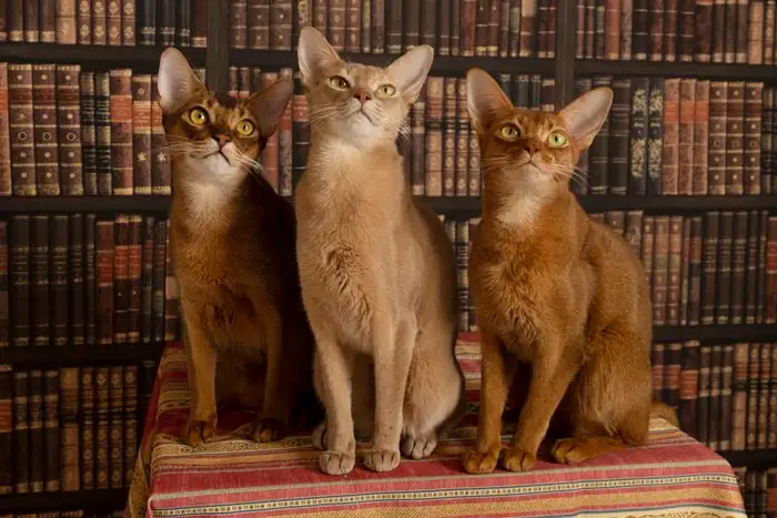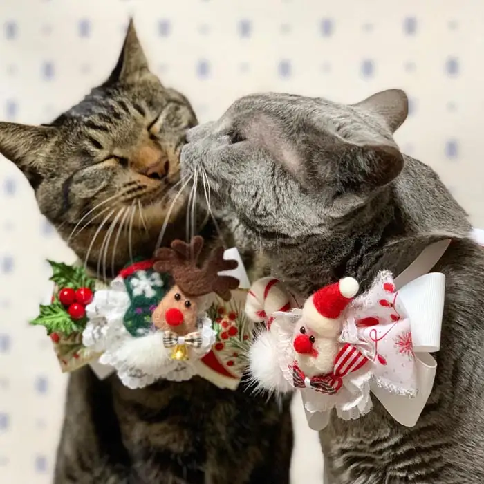 敷物や背景の書棚でしっかり雰囲気をつくったところに3匹が並んでいて、おしゃれですよね。三匹の並び順はいつも一緒とのこと。まるでトリオ漫才のようでかわいいです。