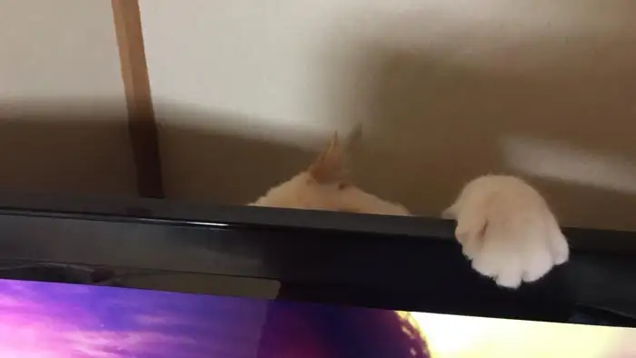 パカーンと開いた脚に、伸びた舌。この無防備すぎる感じがたまらなくかわいいですよね。しかも暖房の真ん前という特等席。万全の状態を整えた上で、遊びに没頭するさまがいいですよね。