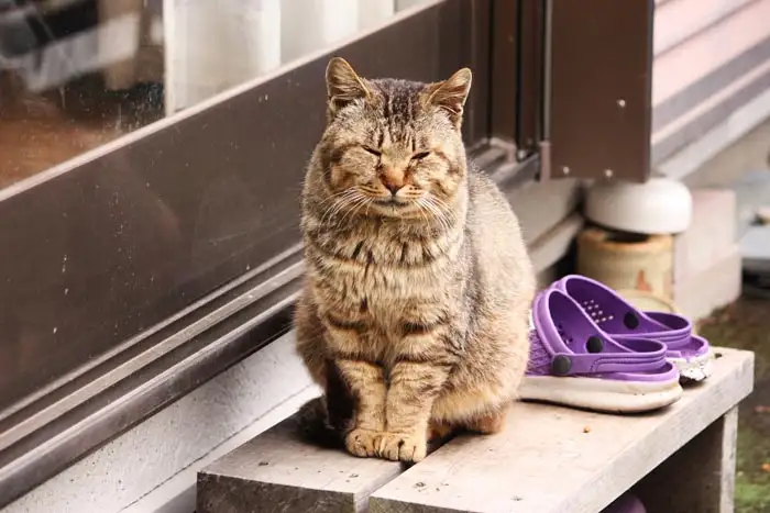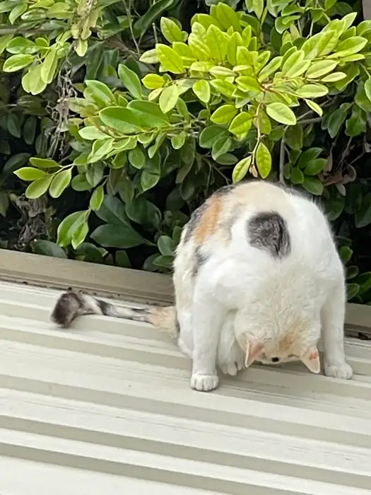 おなかが空いて「早く誰か来ないかな~?」とちょっと前乗りして待っている感じがかわいいなと思いました。背景の桜もいいですよね。(※ネコ担注:地域の特定を避けるため、編集部で画像の一部を編集しています)