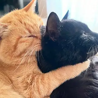 わざわざネコの上に乗って、こんなに伸び切るという図々しさ。嫌がらせでしかないけど、下にいる子はそんなに嫌そうではない。タイトルとは裏腹に2匹の仲の良さが垣間見られる1枚です。