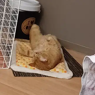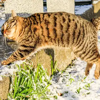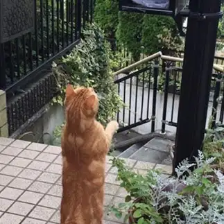 ポストをじーっと見て、待ち遠しいから立っちゃった感じがよく出ています。背筋をピーンとのばして、ほんとはいったい何を見ているのでしょう。ネコには立つ理由があるのでしょうきっと。